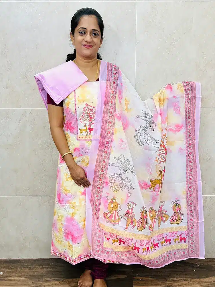 Printed cotton top with printed cotton dupatta and cotton bottom