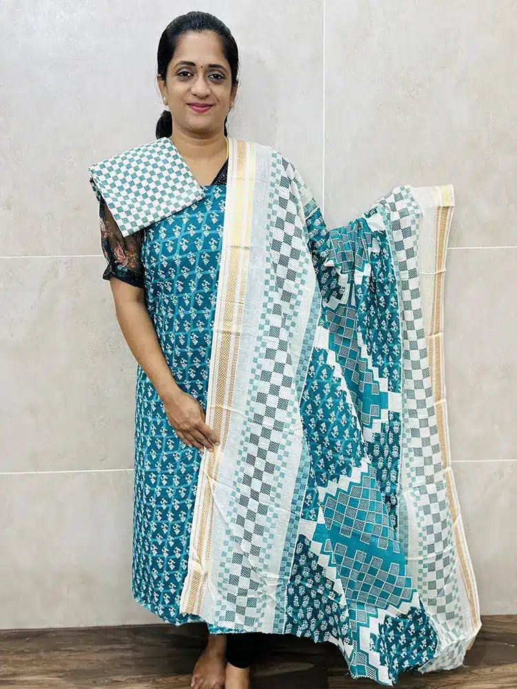 Printed cottton top paired with a printed cotton dupatta and cotton bottom
