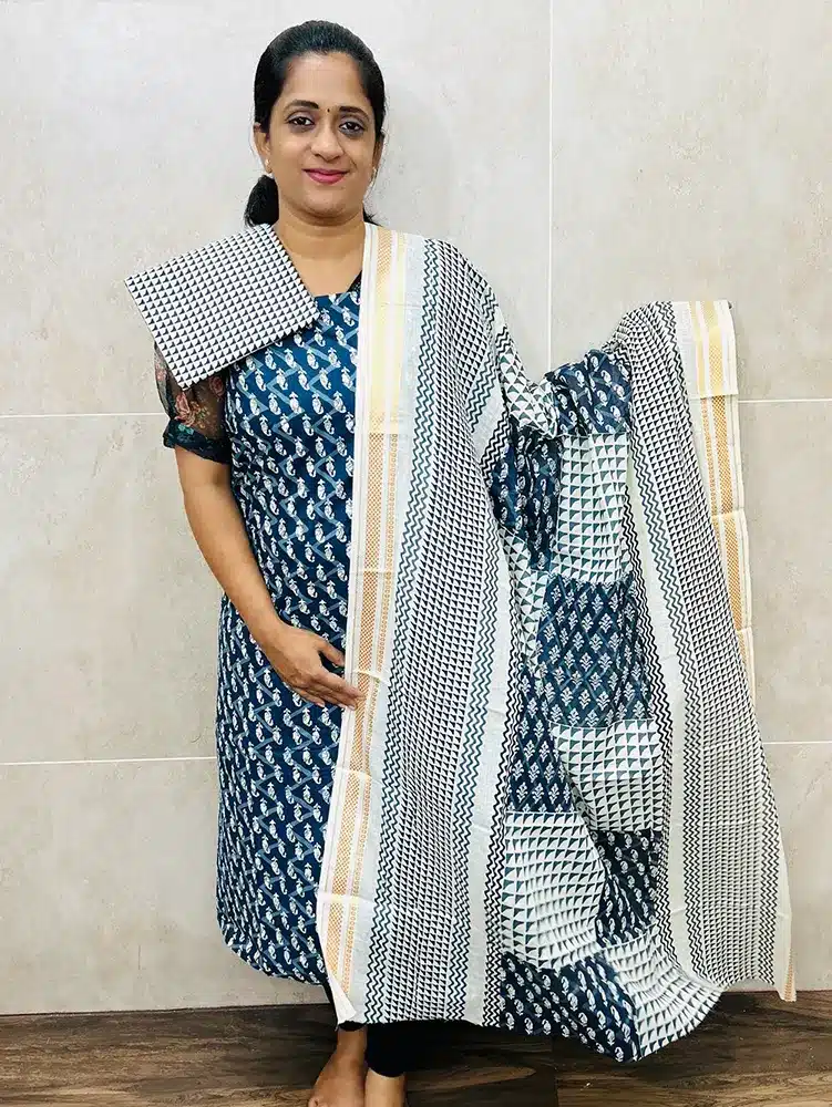 Printed cottton top paired with a printed cotton dupatta and cotton bottom