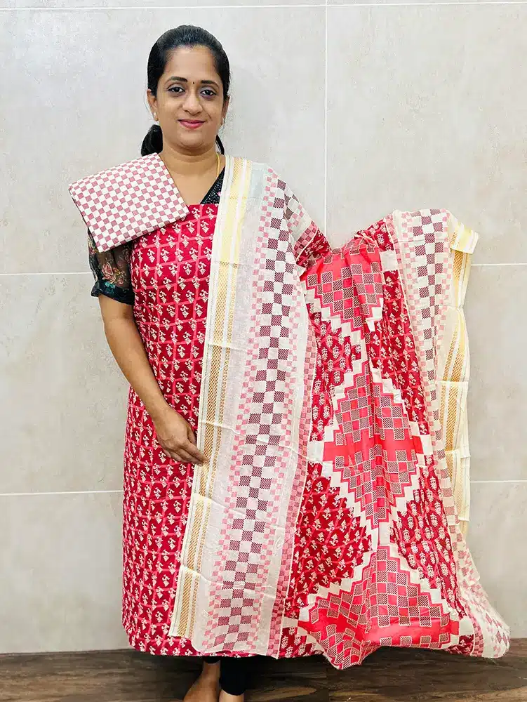 Printed cottton top paired with a printed cotton dupatta and cotton bottom