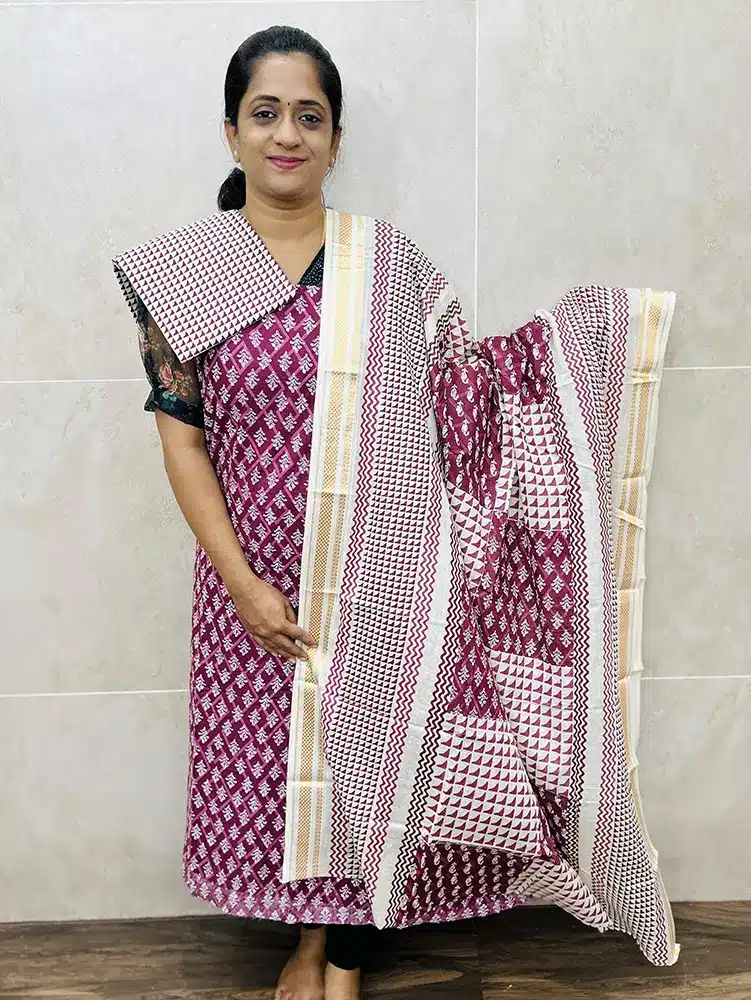 Printed cottton top paired with a printed cotton dupatta and cotton bottom