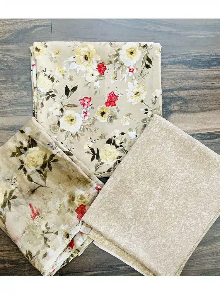 Printed crepe top with printed chiffon dupatta and printed crepe bottom