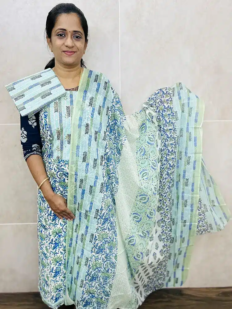 Printed Jaipur cotton top paired with a printed cotton dupatta and cotton bottom