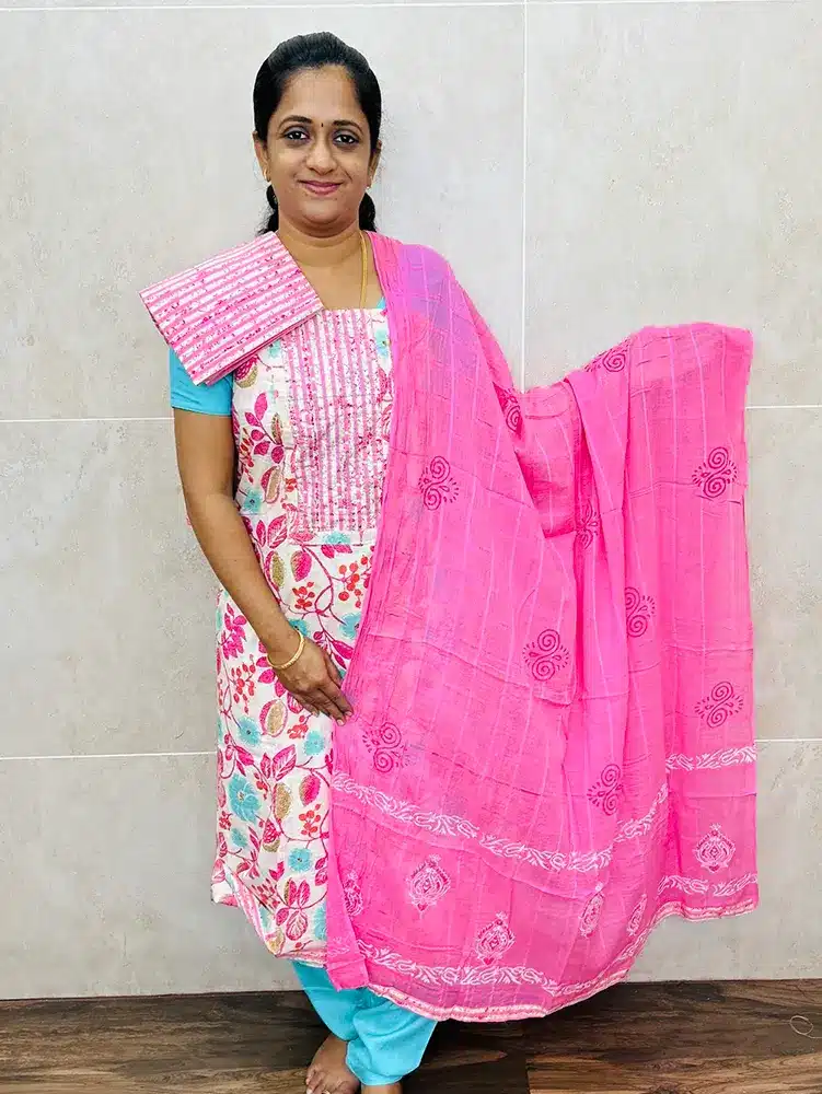 Printed Jaipur cotton top paired with a printed cotton dupatta and printed cotton bottom