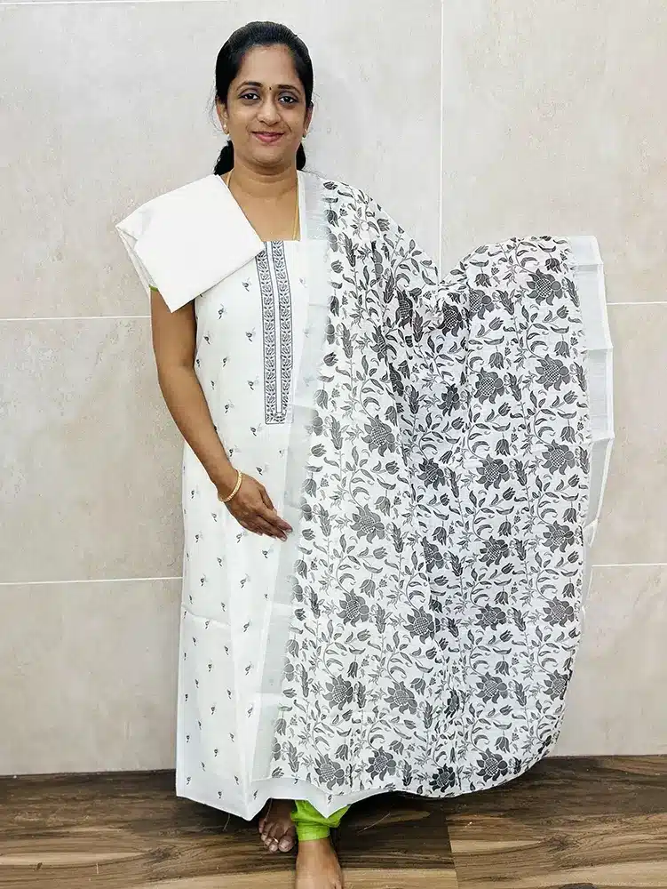 Printed linen cotton top with linen cotton dupatta and cotton silk bottom