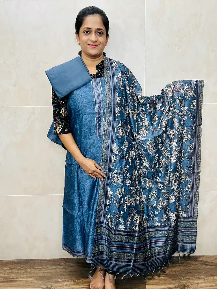 Printed Maheshwari silk top with semi tussar dupatta and cotton silk bottom