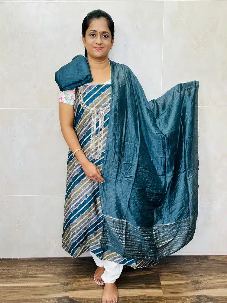 Printed modal silk top paired with soft silk dupatta and cotton silk bottom