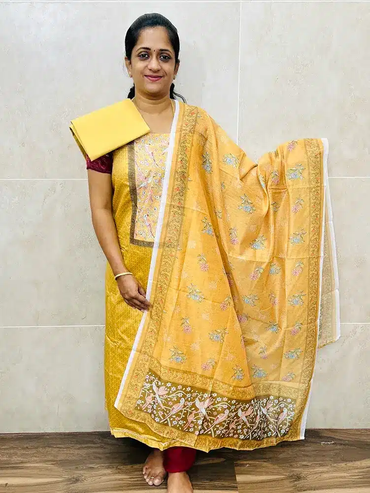 Printed soft cotton top paired with Chanderi silk dupatta and cotton bottom