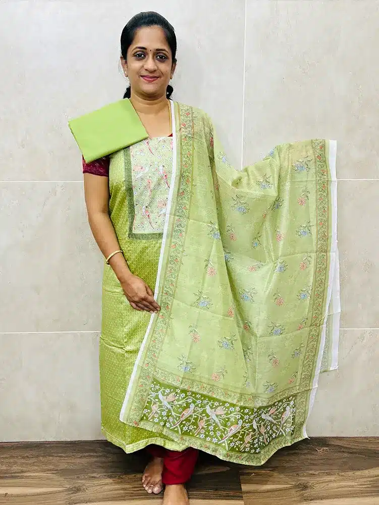 Printed soft cotton top paired with Chanderi silk dupatta and cotton bottom