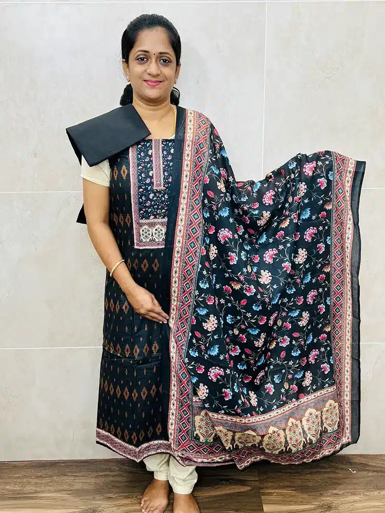 Printed soft cotton top paired with printed cotton dupatta and cotton bottom