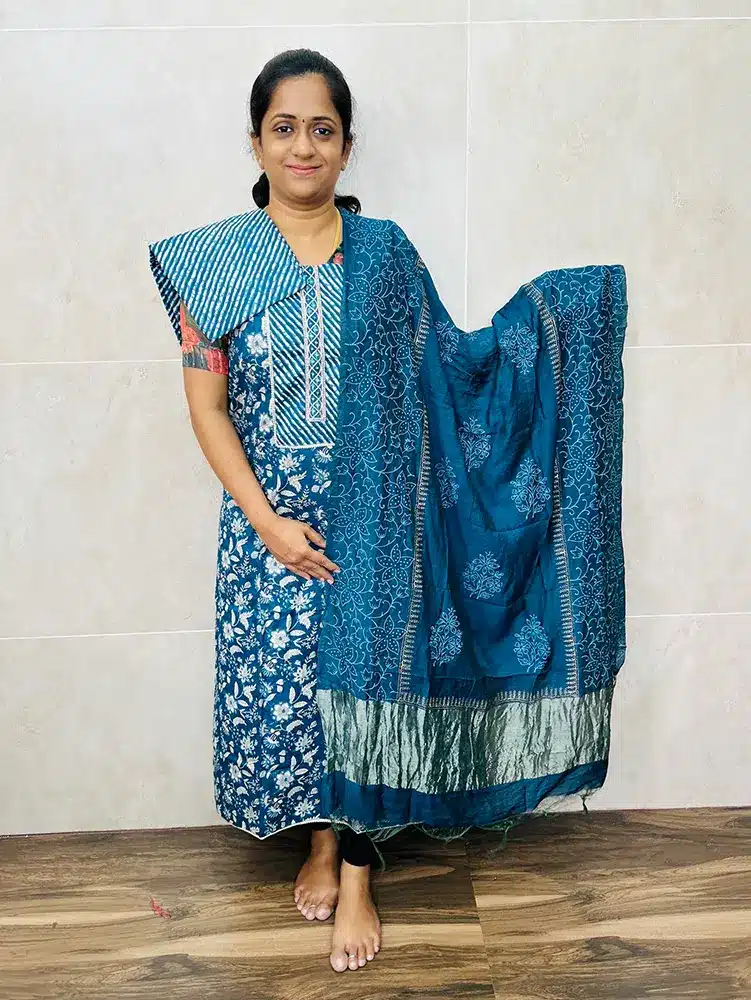 Printed soft cotton top with printed silk dupatta and printed cotton bottom