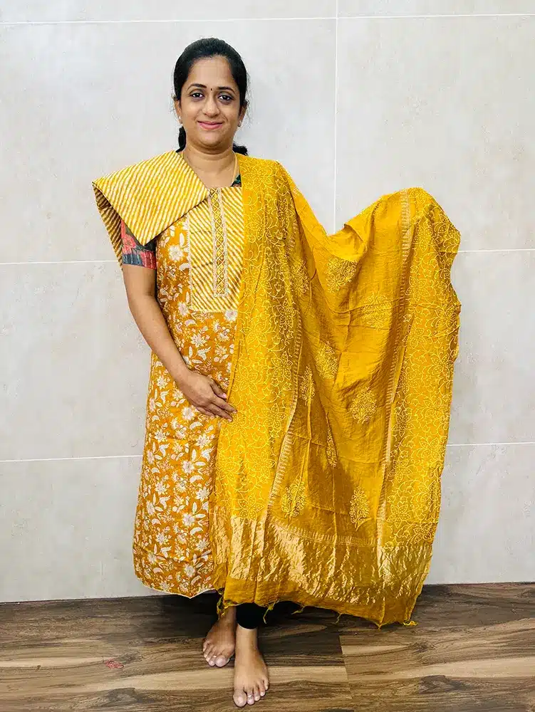 Printed soft cotton top with printed silk dupatta and printed cotton bottom