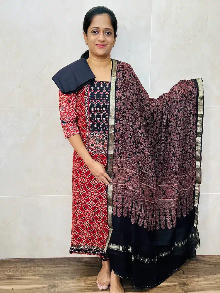 Pure Ajrakh cotton top with pure ajrakh cotton dupatta and cotton bottom