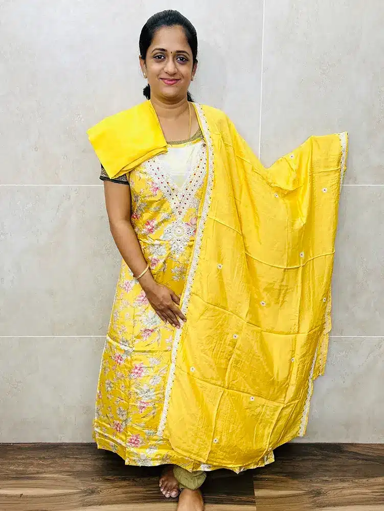 Pure uppada silk top with embroidered yoke paired with embroidered soft silk dupatta and cotton silk bottom