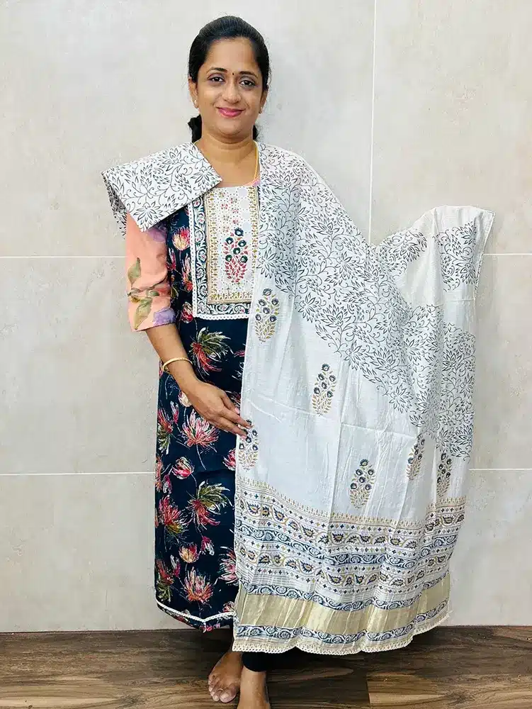 Rayon cotton top with printed soft silk dupatta and printed cotton bottom