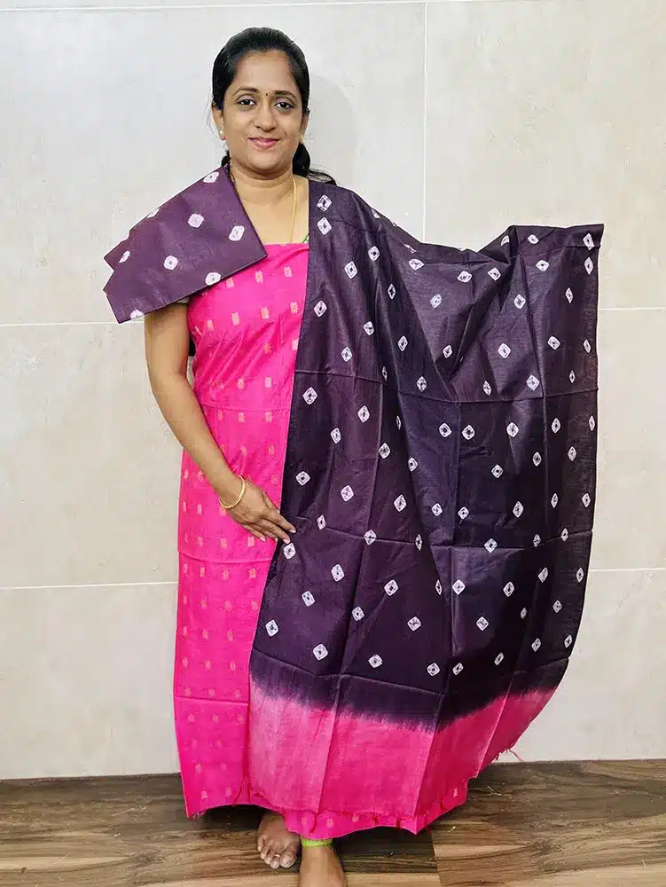 Semi tussar top with semi tussar dupatta and semi tussar bottom