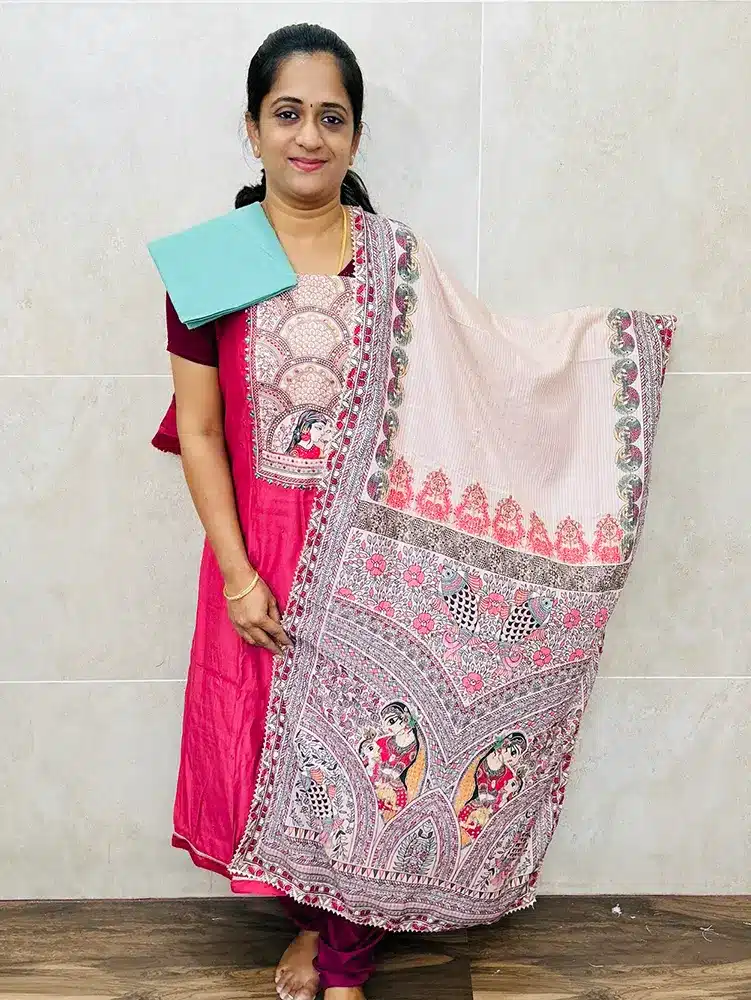 Soft cotton silk top paired with printed soft silk dupatta and cotton bottom