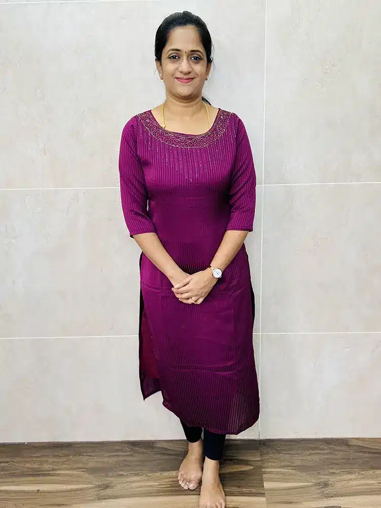 (Purple – Pattern 2) Very soft Premium Crepe top with handworked yoke (Straight Cut)